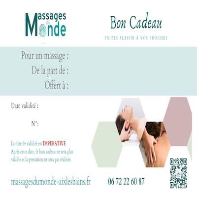 A l’occasion d’une fête, d’un évènement particulier, vous souhaitez faire un cadeau original, vous pouvez alors offrir un bon cadeau pour un massage. Vous êtes sûr de faire plaisir.